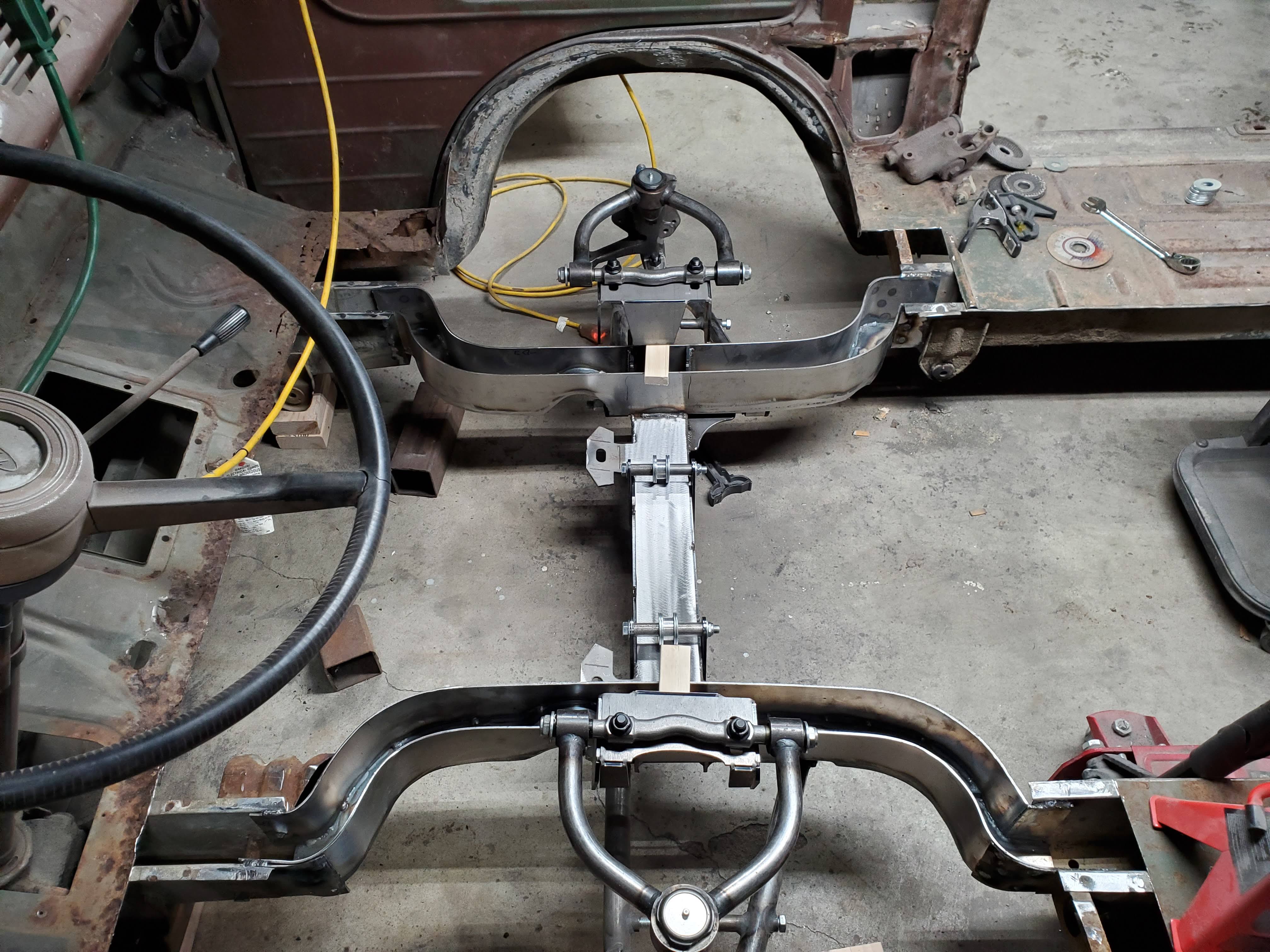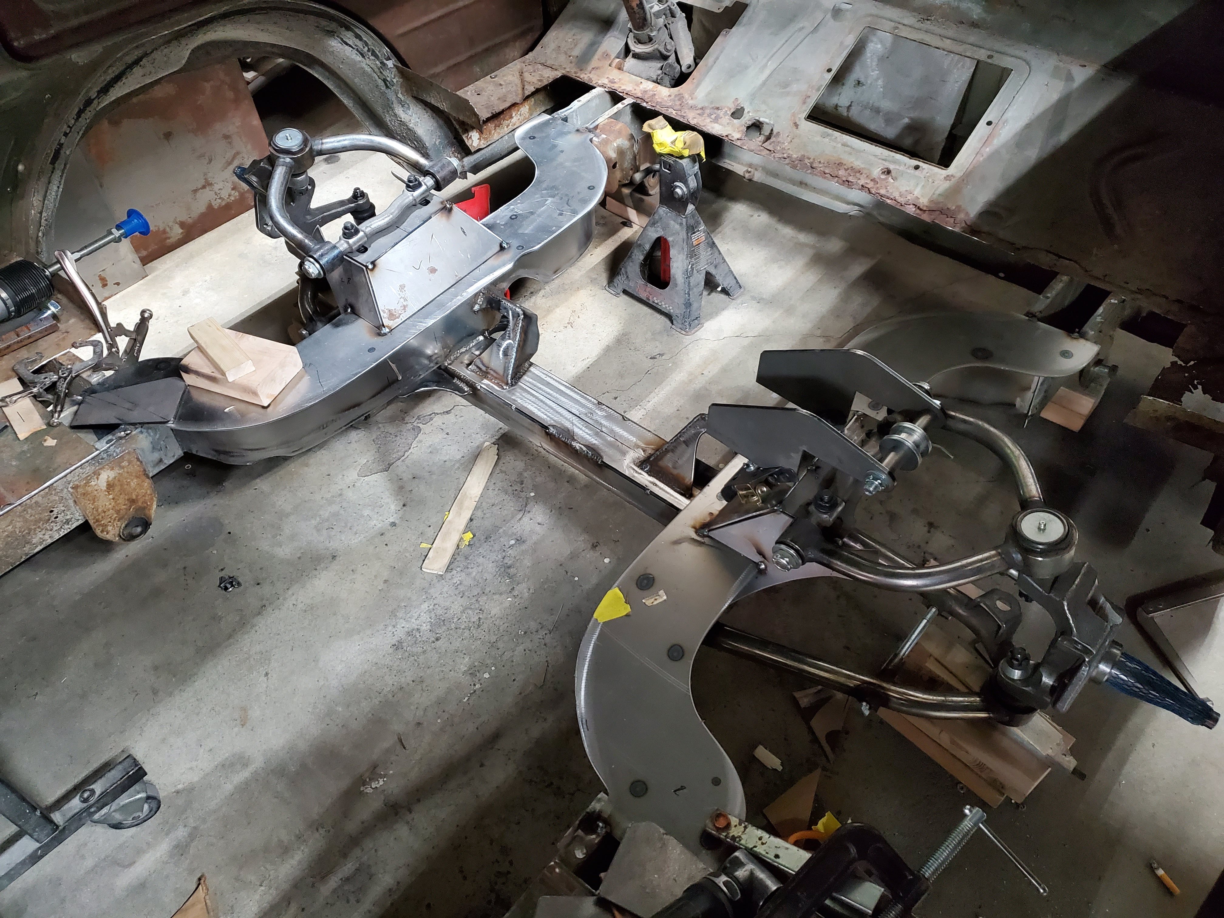 This is my own personal project. You really have to see it in person to get an understanding of all the work involved. Full custom chassis with a Mustang II front suspension, 4 link rear suspension, front and rear sway bars and triple adjustable coilovers. The engine is a 289 out of a 1967 Ford Galaxie police car that will be stroked out to a 331, and a C5 transmission.