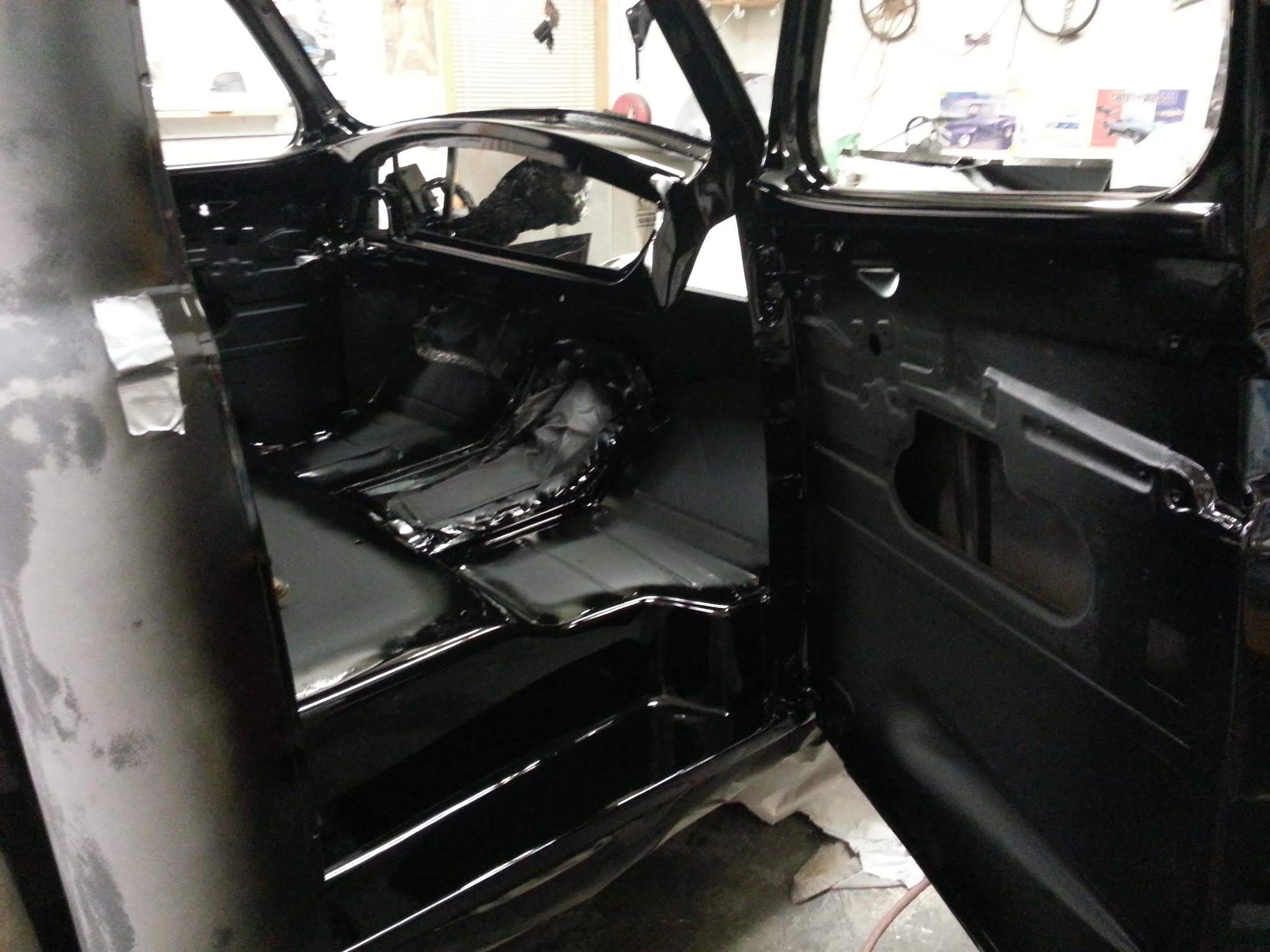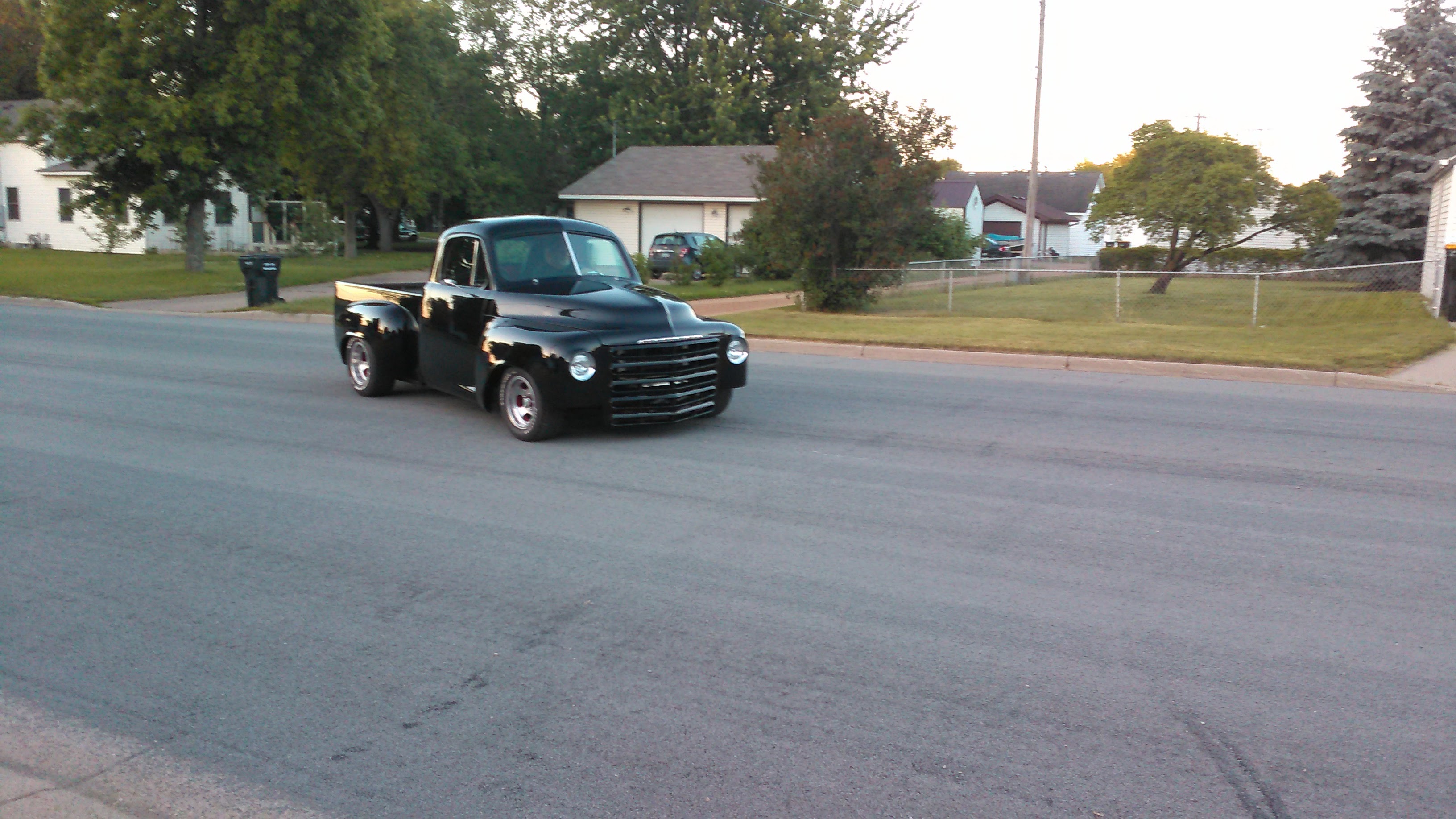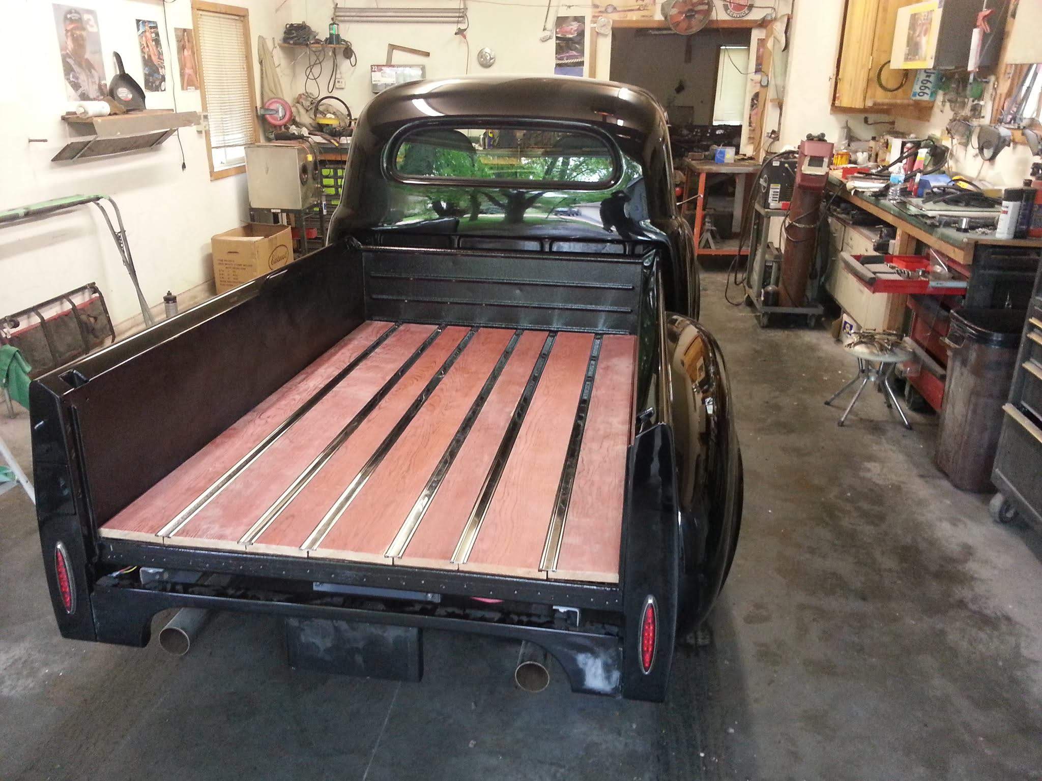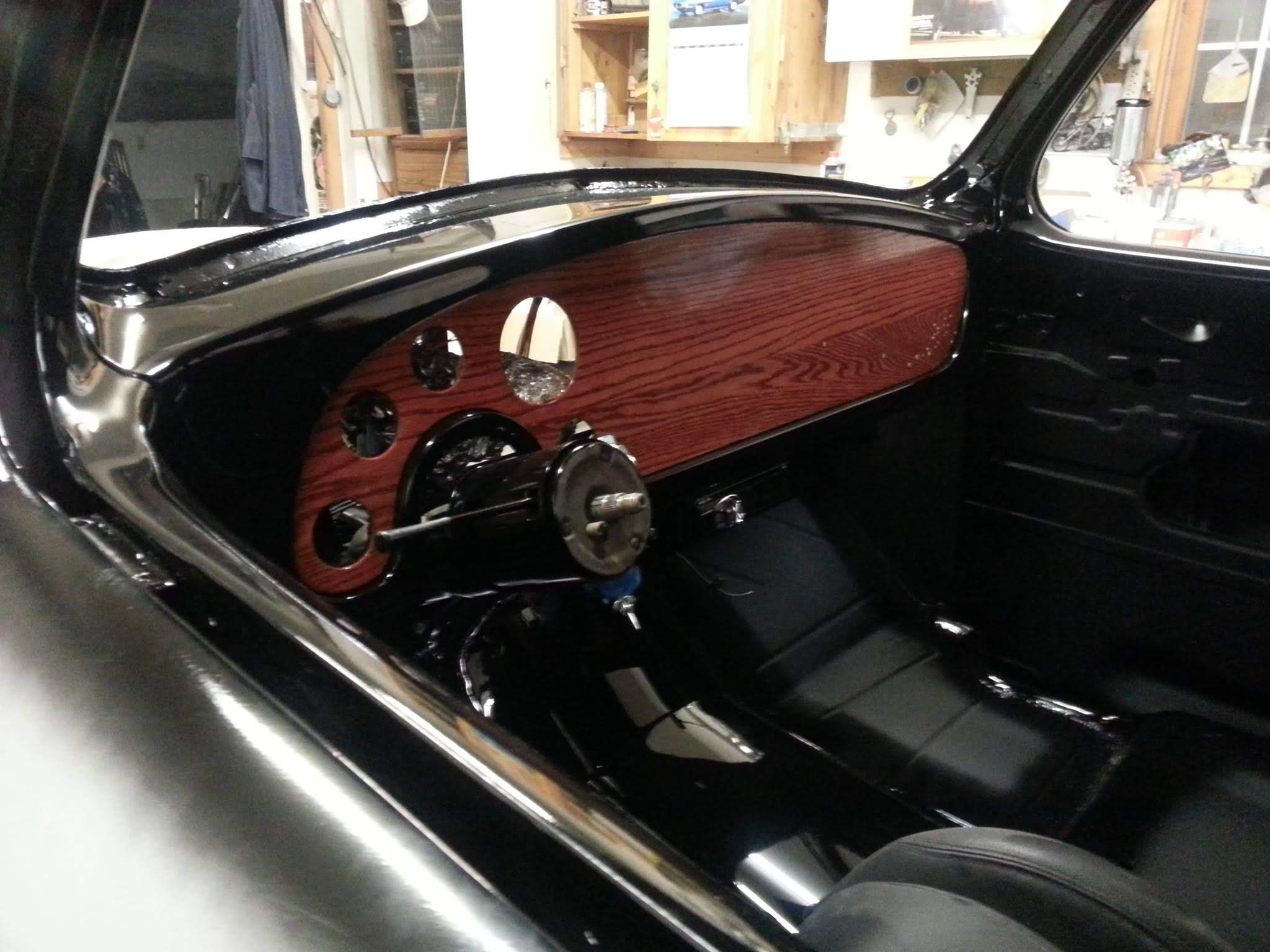 Body drop, frenched headlamps, and a custom dash are a few body modifications on this piece of art. The door handles are the side mirrors as well. The third brake light shines through the painted Studebaker script on the tailgate.