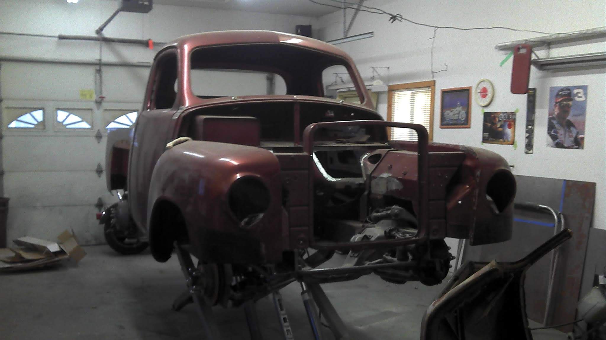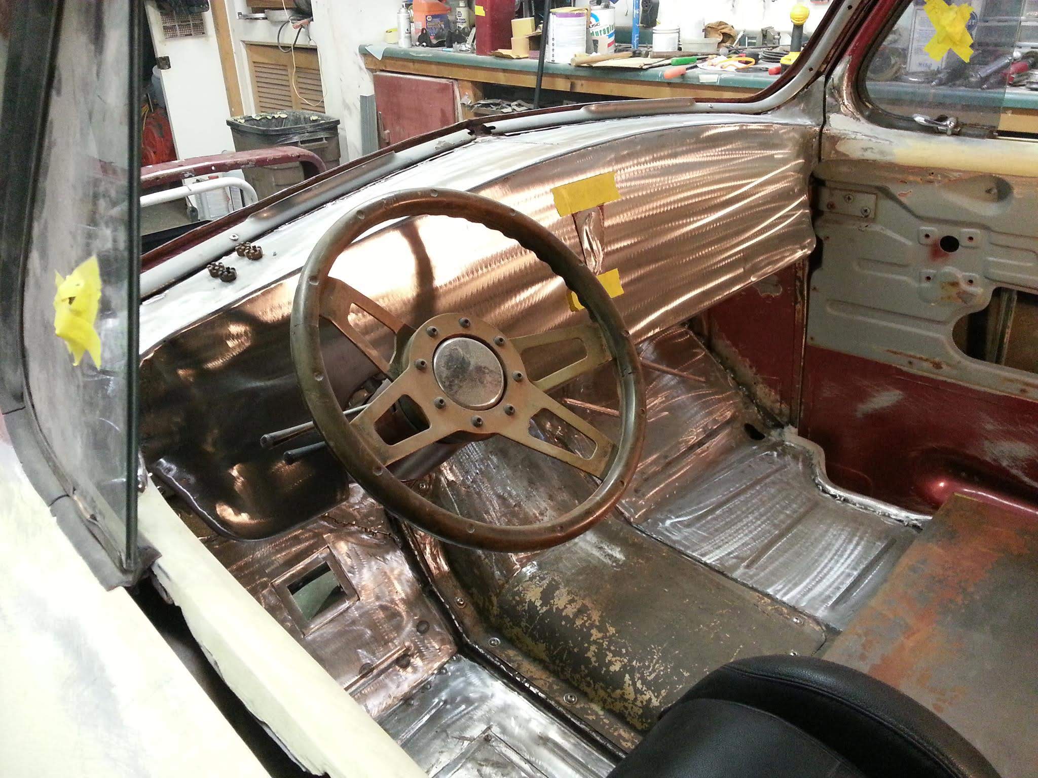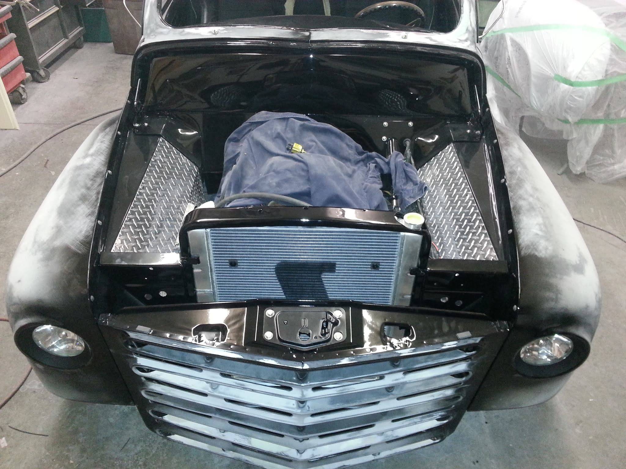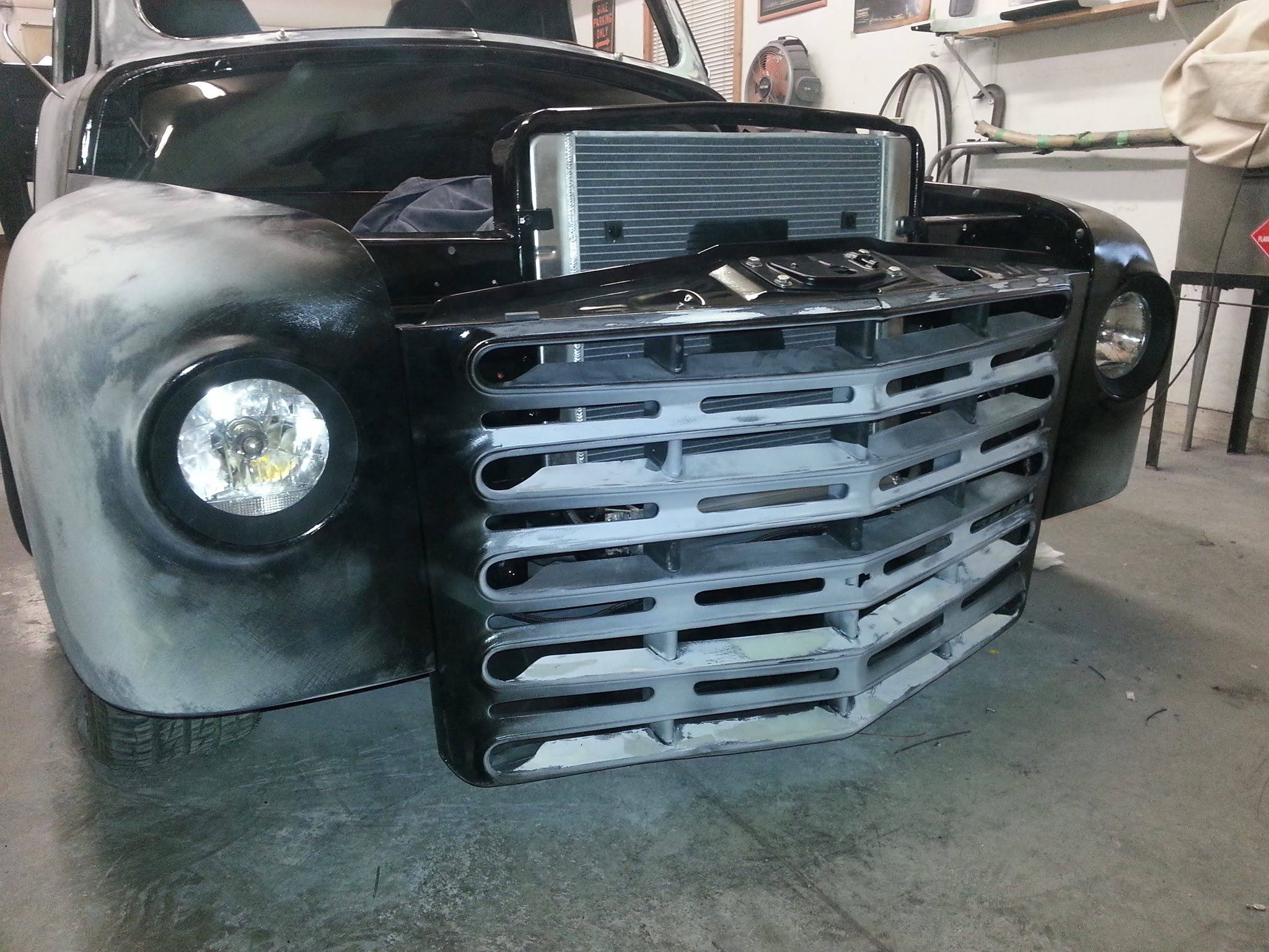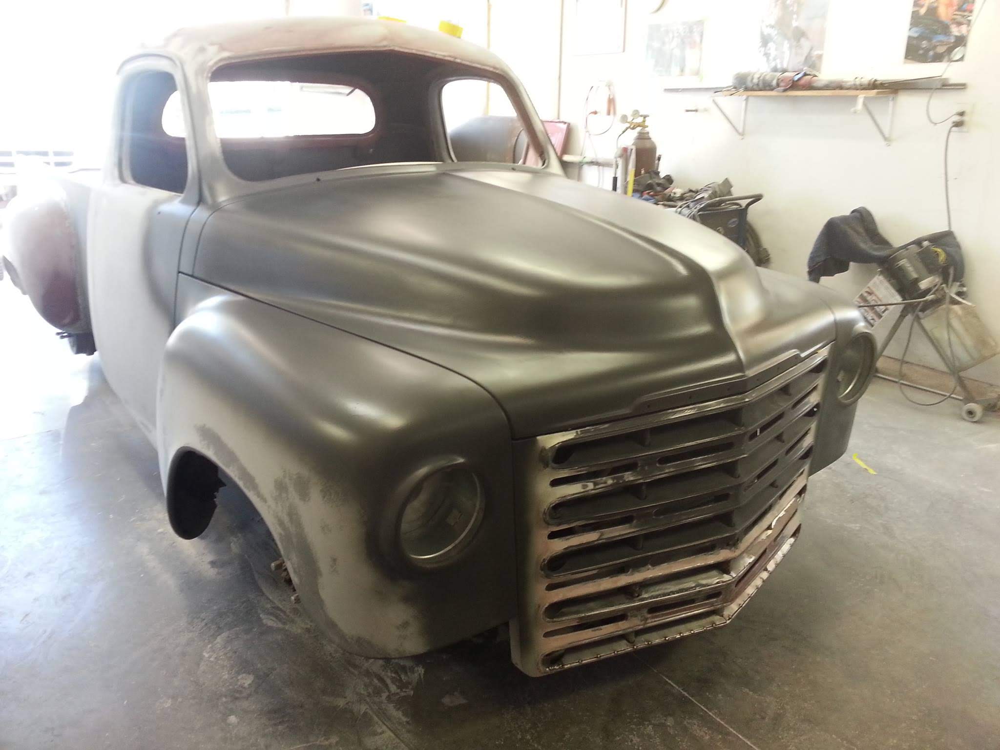 Body drop, frenched headlamps, and a custom dash are a few body modifications on this piece of art. The door handles are the side mirrors as well. The third brake light shines through the painted Studebaker script on the tailgate.