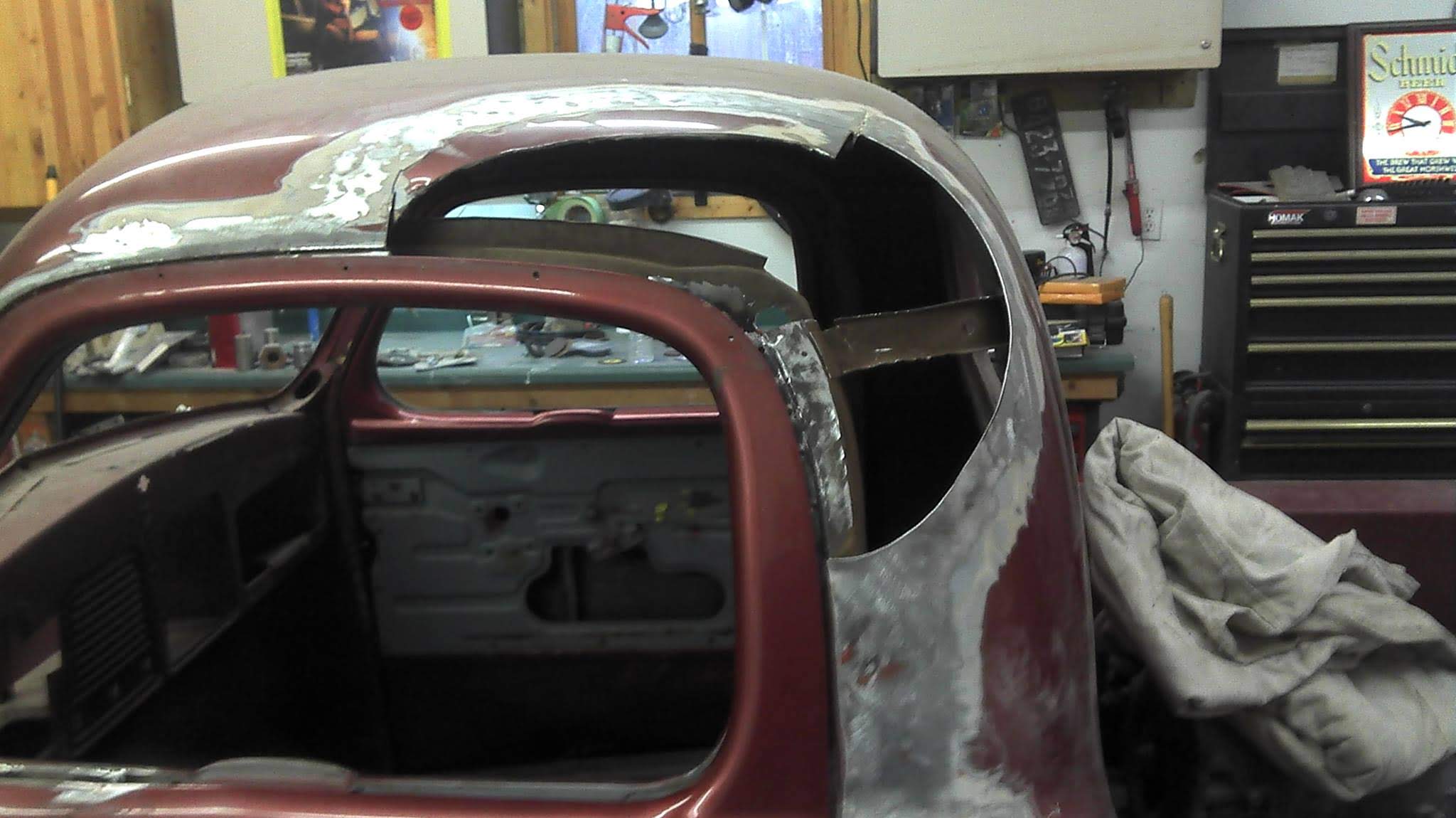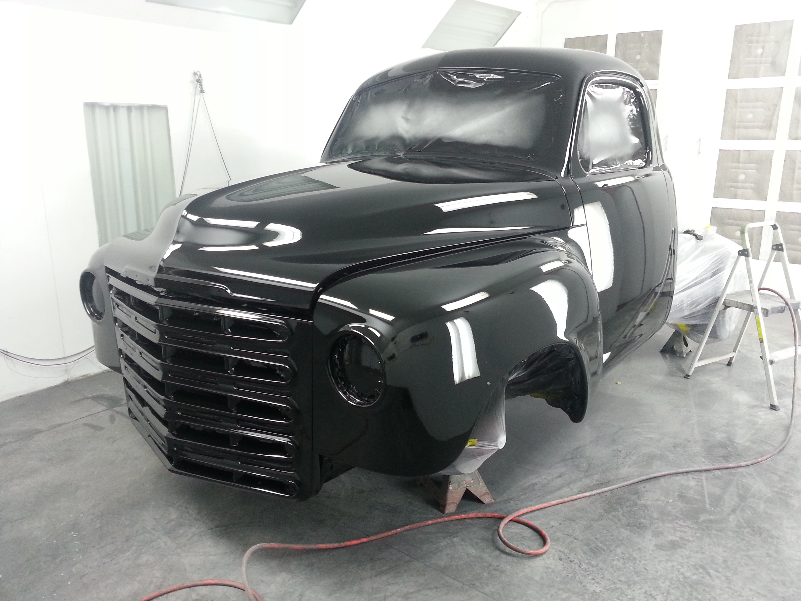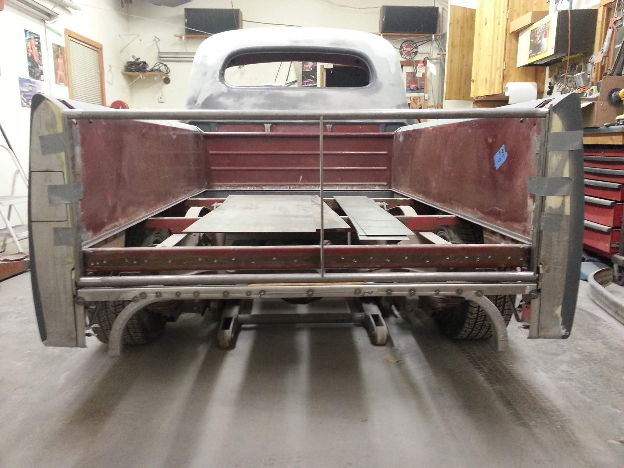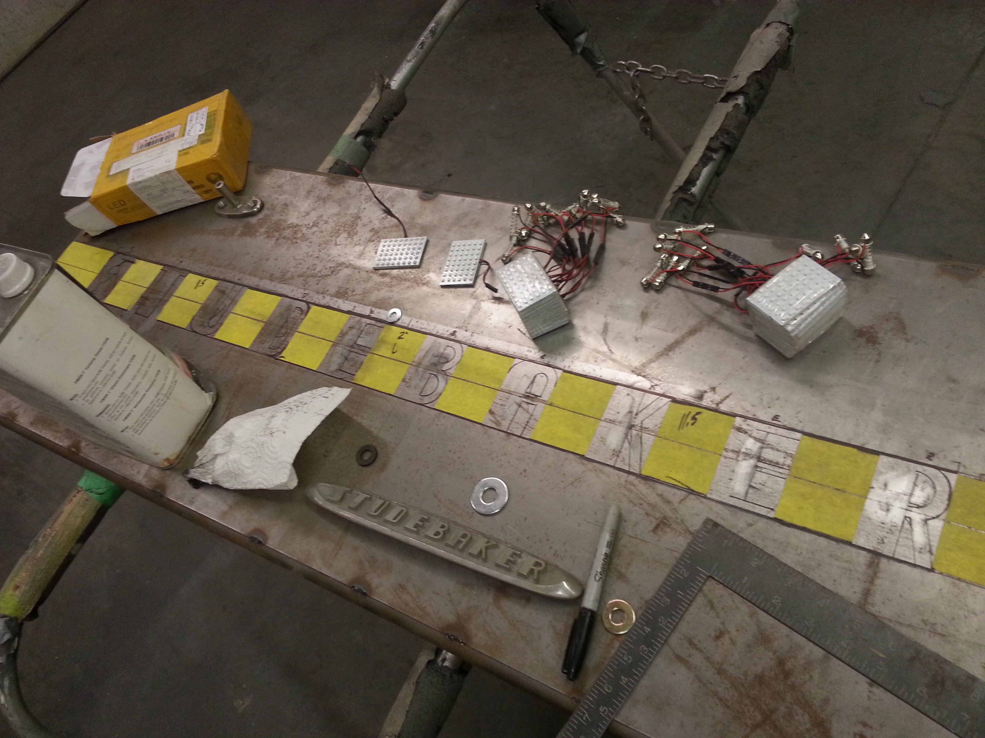 Body drop, frenched headlamps, and a custom dash are a few body modifications on this piece of art. The door handles are the side mirrors as well. The third brake light shines through the painted Studebaker script on the tailgate.